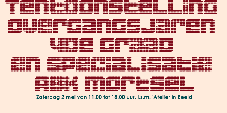 Tentoonstelling overgangsjaren 4de graad en specialisatie ABK Mortsel: op zaterdag 2 mei van 11.00 tot 18.00 uur, i.s.m. ‘Atelier in Beeld’
